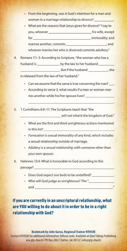 Marriage, Divorce, and Remarriage (Pack of 10) Info-Cards or Oversized Bookmarks